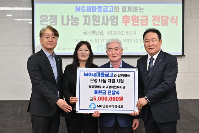 MG¾çµ¿»õ¸¶À»±Ý°í, ±¤ÁÖ¼­±¸Àå¾ÖÀκ¹Áö°ü¿¡ ¿ÂÁ¤ ³ª´® ÈÄ¿ø±Ý Àü´Þ½Ä °³ÃÖ