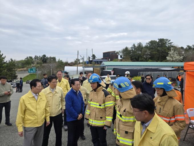 ±è ¿¹ºñÈ帴 À̳¯ ÇöÀå¿¡¼ °ü°èÀڵ鿡°Ô »óȲ º¸°í¸¦ ¹Þ°í, Å« ¾ÈŸ±î¿òÀ» Ç¥Çß´Ù. ±×´Â "°¡Àå À§ÇèÇÑ ÇöÀå¿¡¼ ±¹¹ÎÀÇ »ý¸í°ú ¾ÈÀüÀ» Áö۱â À§ÇØ ³¡±îÁö ÃÖ¼±À» ´ÙÇϼ̴ø µÎ ºÐÀÇ ¿ë±â¿Í Çå½Å¿¡ ¸Ó¸® ¼÷¿© °æÀǸ¦ Ç¥ÇÑ´Ù¡±°í ¸»Çß´Ù. ¡°µ¿·á ´ë¿øµé²²µµ À§·Î¿Í °Ý·ÁÀÇ ¸»À» ÀüÇÑ´Ù¡±°í Çß´Ù.