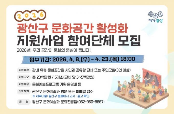±¤Áֽà ±¤»ê±¸, 2026³â ¹®È­°ø°£ °øÀ¯ Ȱ¼ºÈ­ Áö¿ø»ç¾÷ ÃßÁø