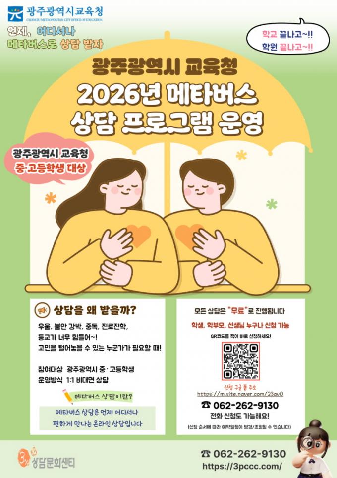 [½Ã»çÁ¾ÇսŹ® = ¿À½ÂÅà ±âÀÚ] ±¤Áֽñ³À°Ã»Àº ÇлýµéÀÇ ½É¸®¡¤Á¤¼­¸¦ ´õ¿í ÃÎÃÎÇÏ°Ô »ìÇDZâ À§ÇØ ¡®2026³â ¸ÞŸ¹ö½º »ó´ã ÇÁ·Î±×·¥¡¯À» °³Æí ¿î¿µÇÑ´Ù.