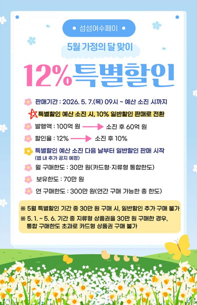 ƯÈ÷ 100¾ï ¿ø ±Ô¸ðÀÇ Æ¯º°ÇÒÀÎÀ» ÅëÇØ 12%ÀÇ ÇÒÀÎ ÇýÅÃÀ» Á¦°øÇϸç, ÇØ´ç ¹°·®ÀÌ ¼ÒÁøµÉ °æ¿ì ´ÙÀ½³¯ºÎÅÍ´Â 10% ÇÒÀÎÀ²·Î 60¾ï ¿øÀ» Ãß°¡ ¹ßÇàÇØ ¼Òºñ ÁøÀÛ ºÐÀ§±â¸¦ À̾ ¹æÄ§ÀÌ´Ù. Ưº°ÇÒÀÎÀº 5¿ù 7ÀÏ ¿ÀÀü 9½ÃºÎÅÍ ¿¹»ê ¼ÒÁø ½Ã±îÁö ÁøÇàµÈ´Ù.