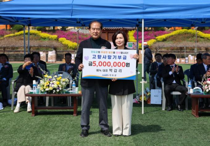 ±èÈñ¼ö Áøµµ±º¼ö´Â ¡°°íÇâÀ» »ç¶ûÇÏ´Â ¹Ú°©¸® ´ëÇ¥ÀÇ ¼ÒÁßÇÑ ¸¶À½¿¡ ±íÀÌ °¨»çµå¸°´Ù¡±¶ó¸ç, ¡°°íÇâ»ç¶û±âºÎÁ¦ Âü¿©°¡ Áö¿ª ¹ßÀü°ú ÁֹΠº¹Áö Çâ»óÀ¸·Î À̾îÁú ¼ö ÀÖµµ·Ï ±âºÎ±ÝÀ» ÀÇ¹Ì ÀÖ°Ô È°¿ëÇϰڴ١±¶ó°í ¸»Çß´Ù.