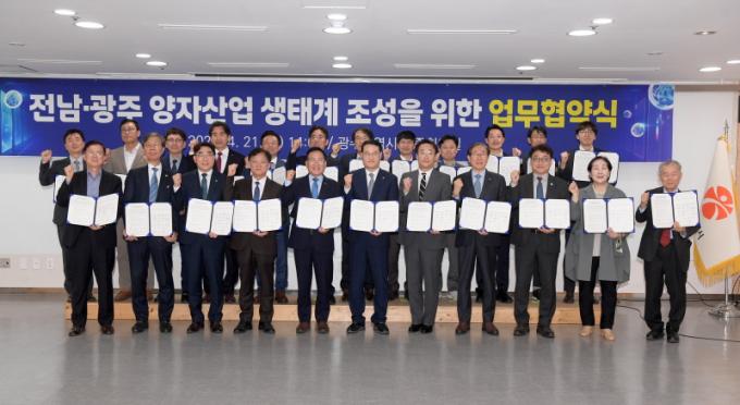 ±¤ÁÖ±¤¿ª½Ã¿Í Àü¶ó³²µµ´Â 21ÀÏ ½Ãû ÁßȸÀǽǿ¡¼ ´ëÇÐ, ¿¬±¸±â°ü, ±â¾÷ µî 23°³ ±â°üÀÌ Âü¿©ÇÏ´Â ¡®±¤ÁÖ¡¤Àü³² ¾çÀÚ»ê¾÷ »ýŰè Á¶¼ºÀ» À§ÇÑ ¾÷¹«Çù¾à½Ä¡¯À» °³ÃÖÇß´Ù. À̹ø Çù¾àÀº ±¤ÁÖ¡¤Àü³²ÀÌ º¸À¯ÇÑ »ê¾÷±â¹Ý°ú ¿¬±¸¿ª·®À» °áÁýÇØ ´ëÇѹα¹ ¾çÀÚ»ê¾÷ÀÇ ÇÙ½É °ÅÁ¡À¸·Î µµ¾àÇϱâ À§ÇÑ Ã¹°ÉÀ½ÀÌ´Ù.