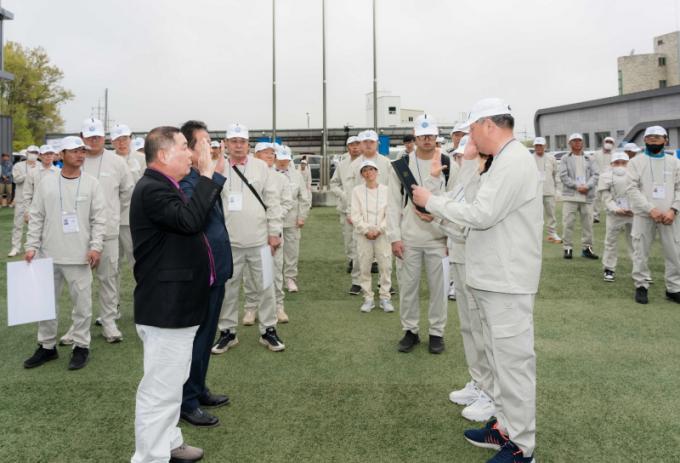 À̳¯ °á´Ü½Ä¿¡´Â ¼±¼ö´Ü°ú °ü°èÀÚµéÀÌ Âü¼®ÇÑ °¡¿îµ¥ ¼±¼ö ´ëÇ¥ÀÇ °áÀǹ® ³¶µ¶°ú ÇÔ²² Çʽ ÀÇÁö¸¦ ´ÙÁö´Â ½Ã°£À» °¡Á³À¸¸ç, ´ëȸ ±â°£ µ¿¾È ¾ÈÀüÇÏ°í °øÁ¤ÇÑ °æ±â ¿î¿µÀ» ´ÙÁüÇß´Ù.