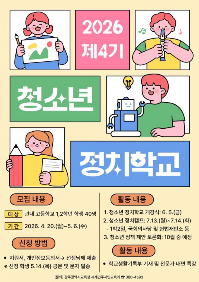 ±¤ÁÖ±¤¿ª½Ã±³À°Ã», Á¦4±â û¼Ò³â Á¤Ä¡Çб³ Âü°¡ÀÚ ¸ðÁý